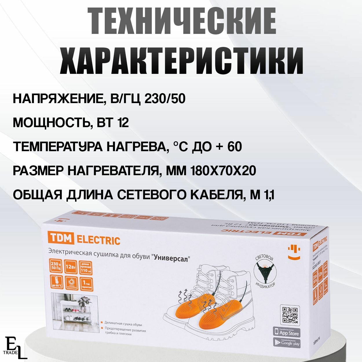 Электрическая сушилка для обуви "Универсал", 12 Вт, провод 110 см, TDM (1 шт.)