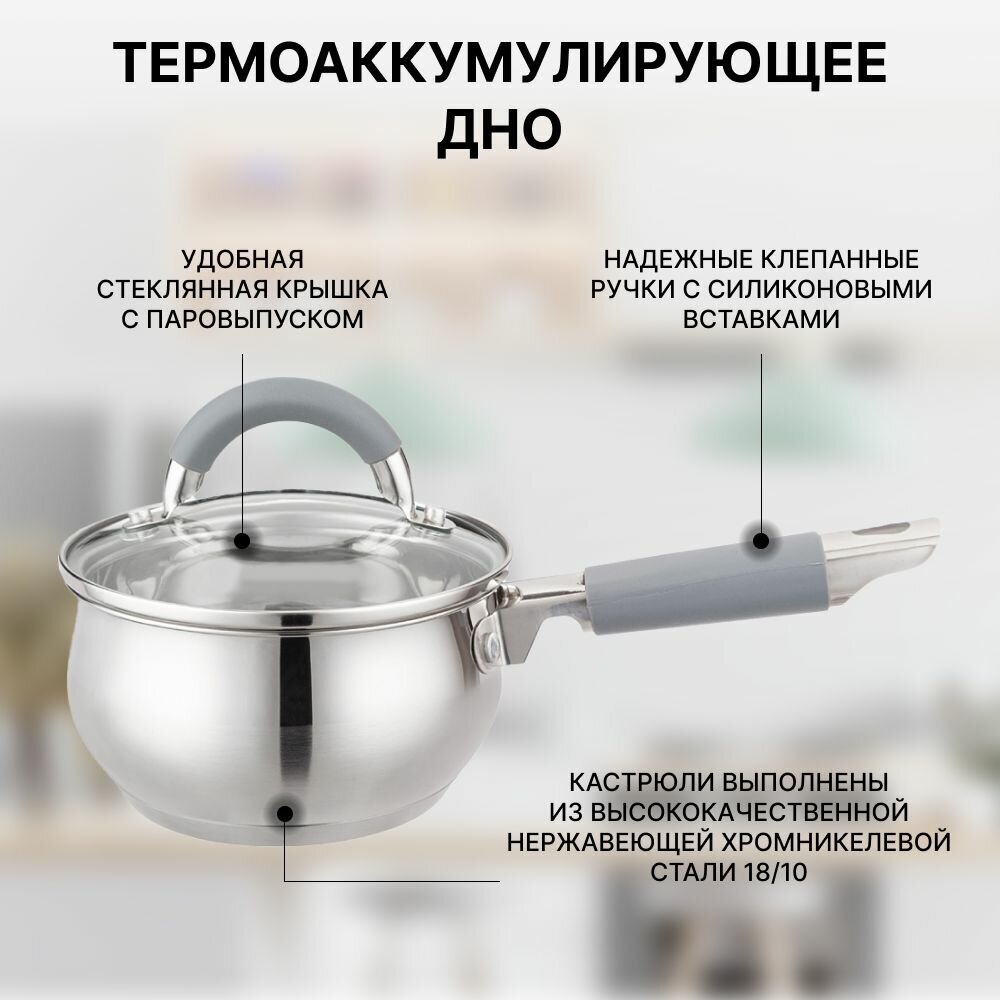 Купить Ковш кухонный Agness со стеклянной крышкой, серия "Apple" 1 л., 14 х 7,5 см