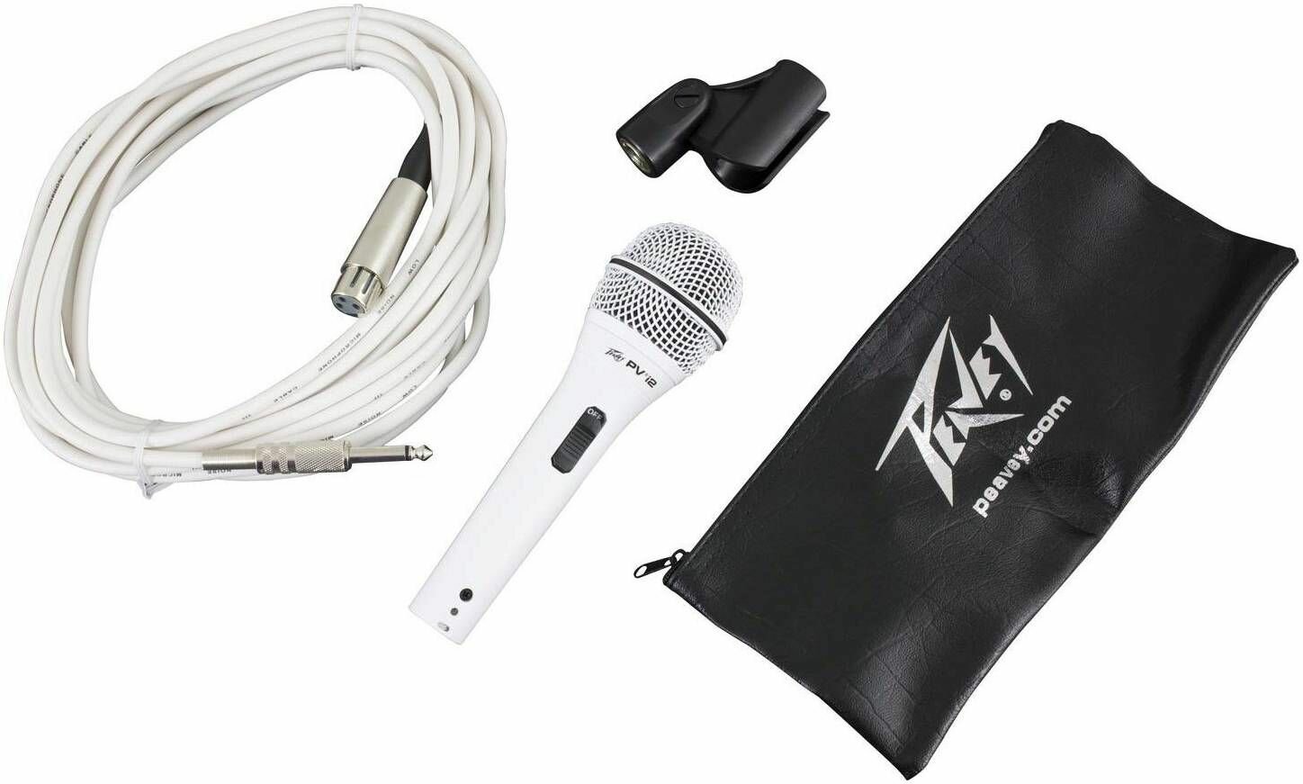 Peavey PVi 2W XLR MIC Комплект: микрофон динамический кардиоидный вокальный белого цвета, кабель XLR-XLR 6м, крепление с адаптер