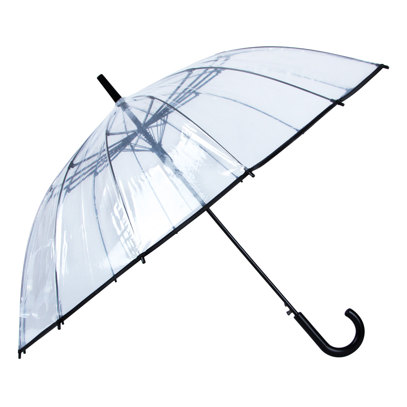 Зонт трость женский Прозрачный 16 спиц, черная кайма, диаметр купола 100 см, мужской
