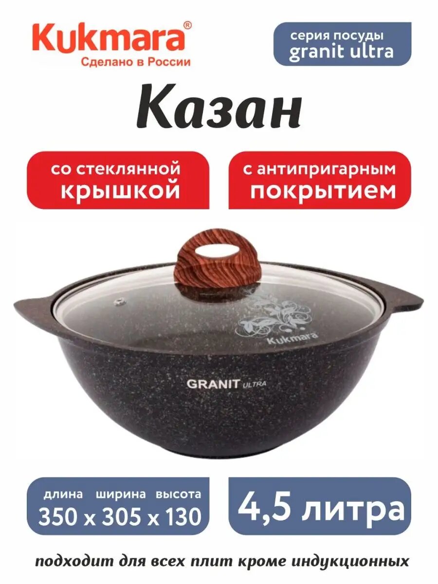 Казан KUKMARA Granit ultra кгг47а, крышка стекло с пл. петлей