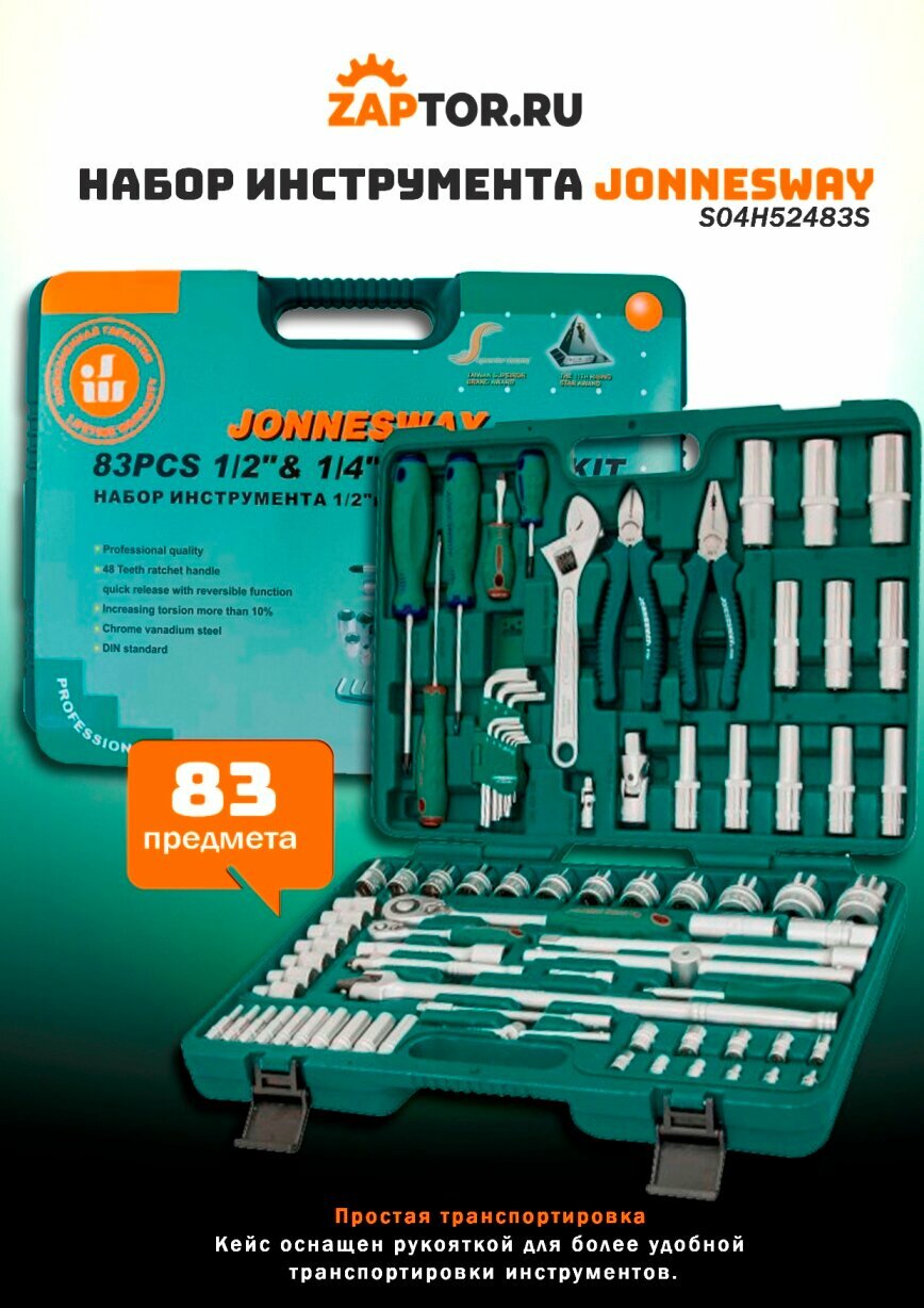 Набор Инструмента! Универсальный 1/4', 1/2'Dr, 83Пр. Jonnesway арт. S04H52483S
