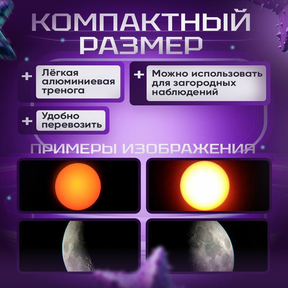 | Плюсы: | Цена, можно хорошо рассмотреть луну и соседей жарящих шашлык на балконе,шутка, простой в наведении ,установке ,транспортировке... |