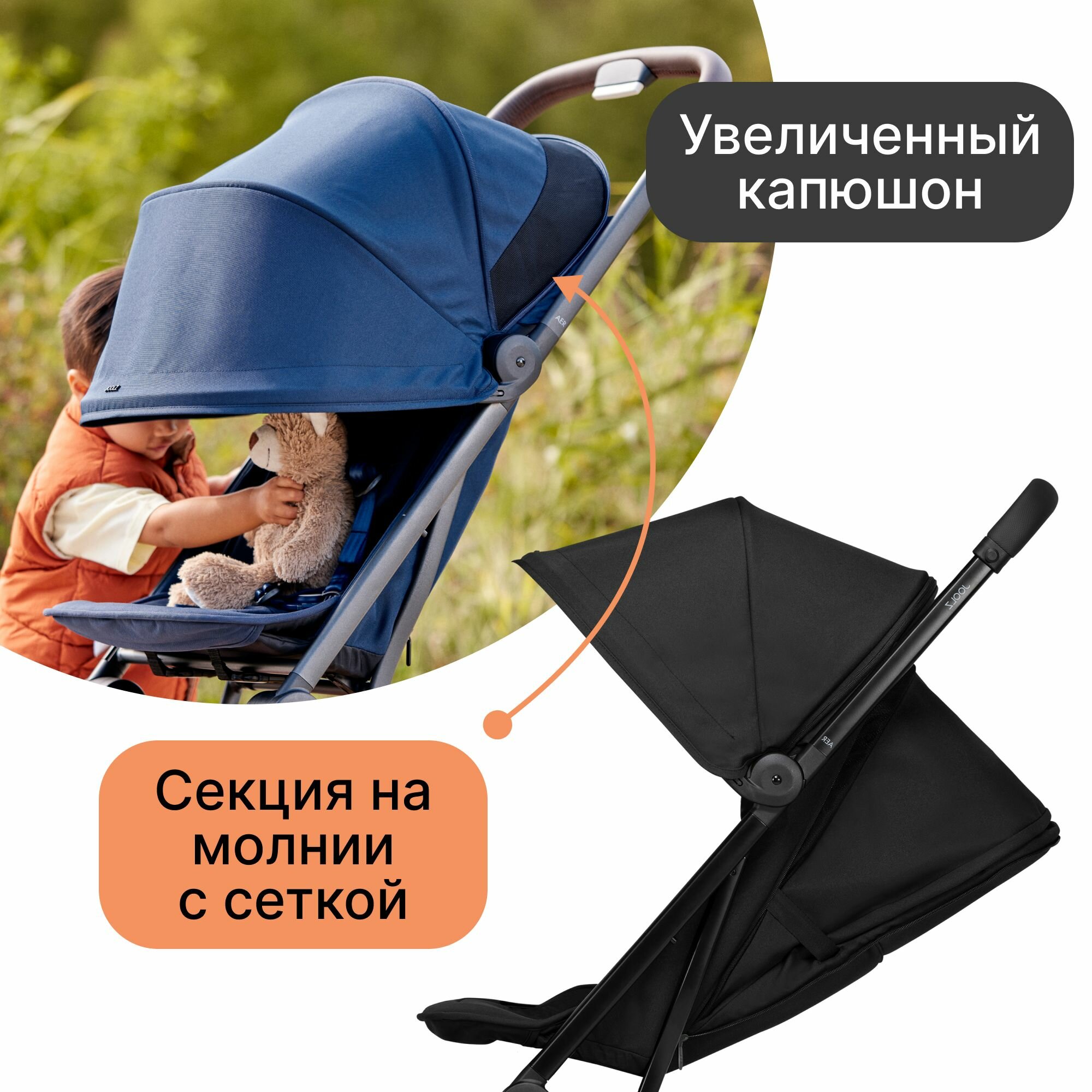 Весит всего 6 кг, можно брать в самолет. У нас крупный ребенок и нам нужна была легкая коляска, но выдерживающая большую нагрузку, Joolz Aer заявлена до 22 кг, поэтому нам идеально все подошло. Суперская коляска, просто одно удовольствие! |