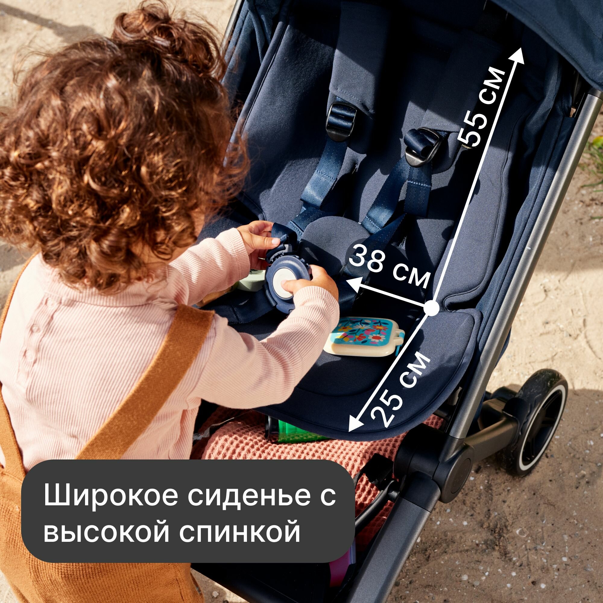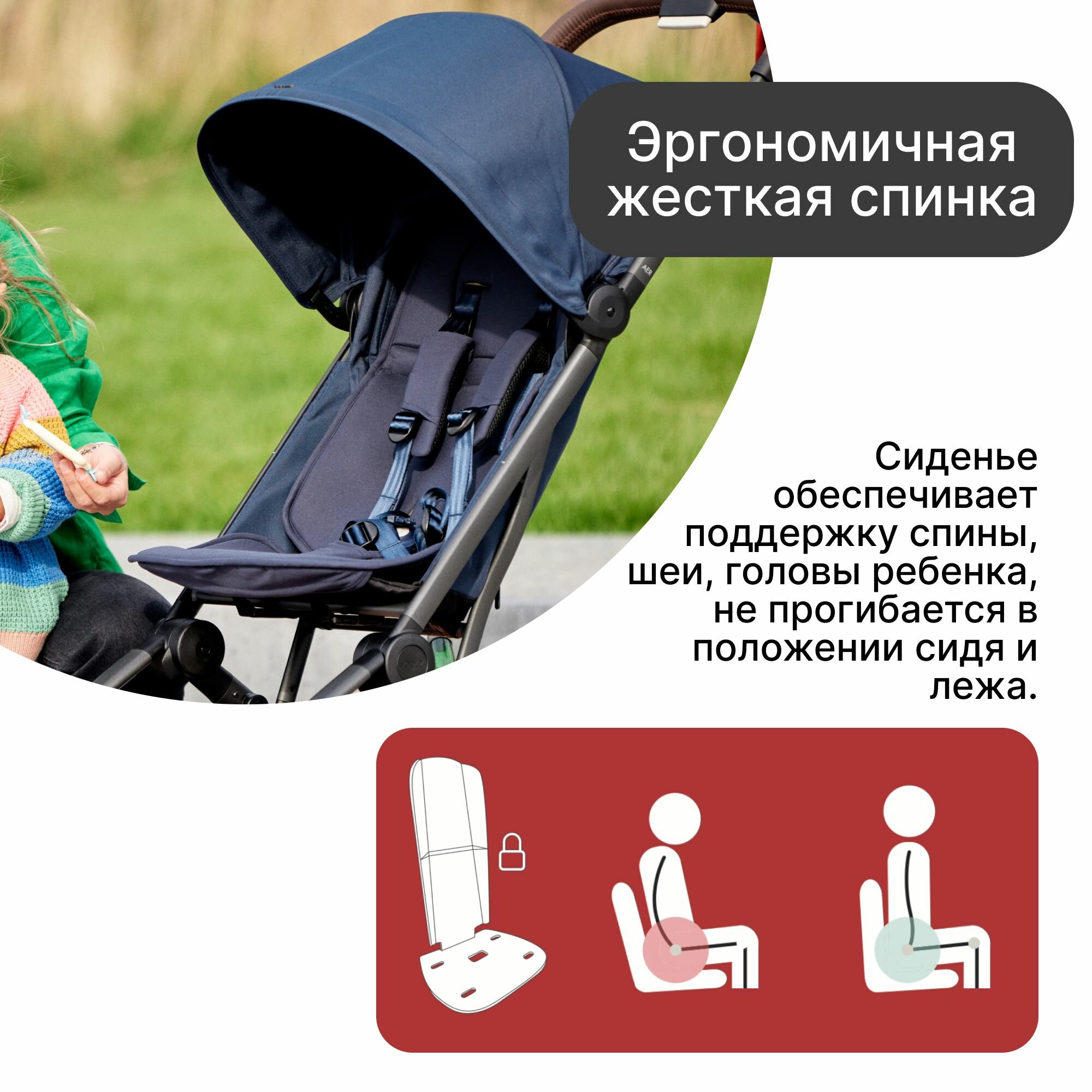 Ребёнку удобно сидеть (как младшему так и старшему) В комплекте чехол для переноски Ручка из экокожи очень приятная на ощупь. Очень ей довольна, прям супер вариант из компактов, а самое важное что колёса не гремят! Как и обещал производитель |