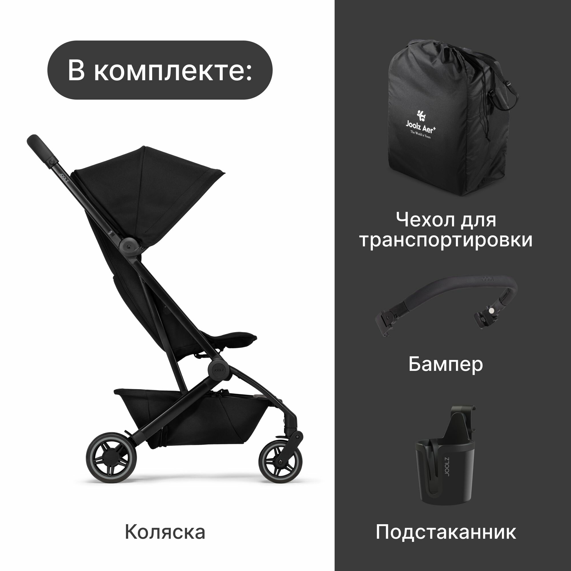 Купить Коляска Joolz Aer+ Space Black c бампером и подстаканником, черная, легкая и компактная прогулочная коляска для путешествий