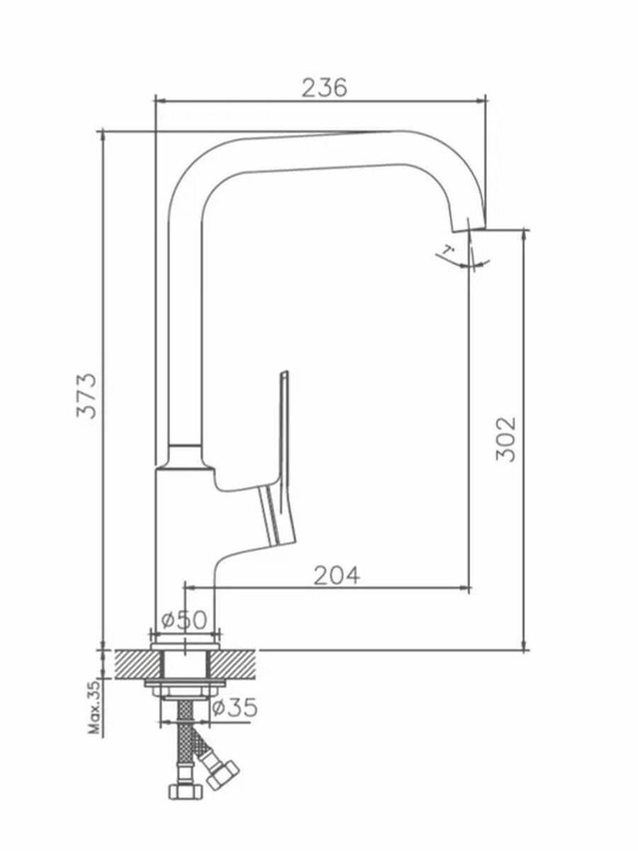 | Длина излива | 204 мм |