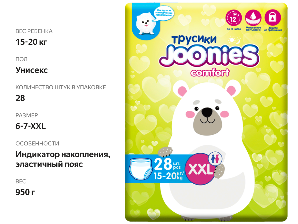 Подгузники-трусики JOONIES Comfort, размер XXL (15-20 кг), 28 шт. 9841774