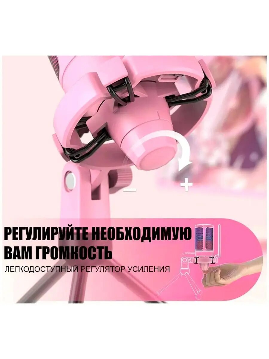 Конденсаторный USB Микрофон Fifine A6V с RGB-подсветкой (Pink)