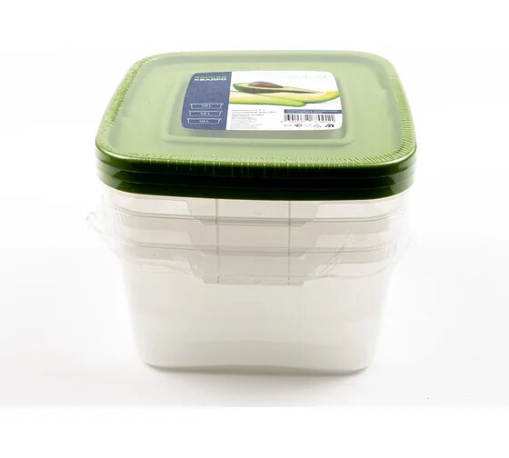 Контейнер пищевой 1,0л комплект 3шт ланч бокс каскад квадро 12х14х14см прозрачный/зеленый, 67001, 436700165