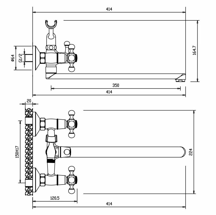 Смеситель для ванны с длинным изливом GIRONA 01221GRG (резиновые кран-буксы)