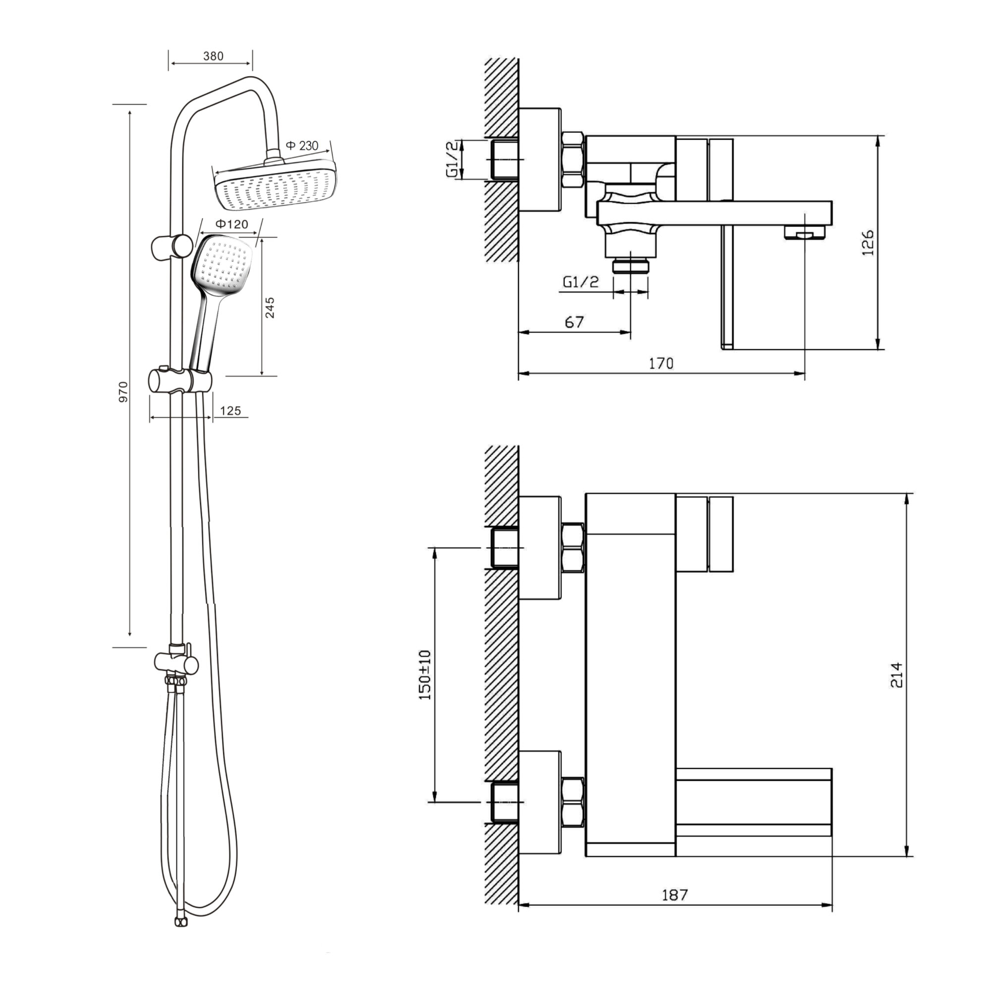 | Комплектация | душ стойка / ручной душ / набор для подключения / инструкция / Смеситель |