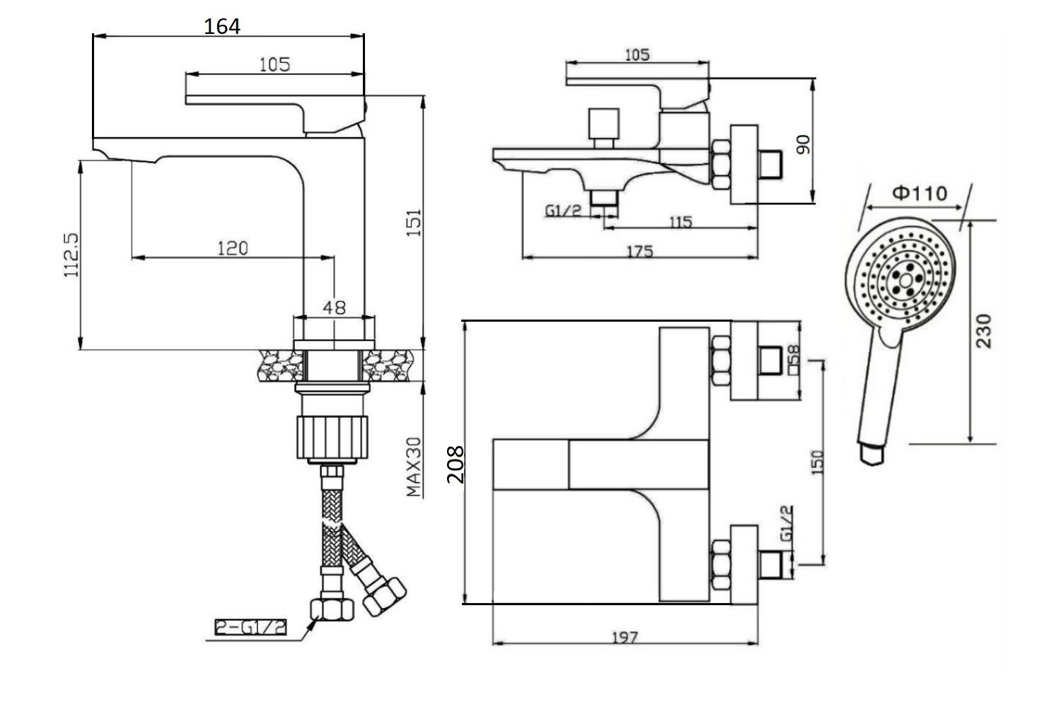 Набор смесителей с душевым гарнитуром Orange Lutz M04-311w