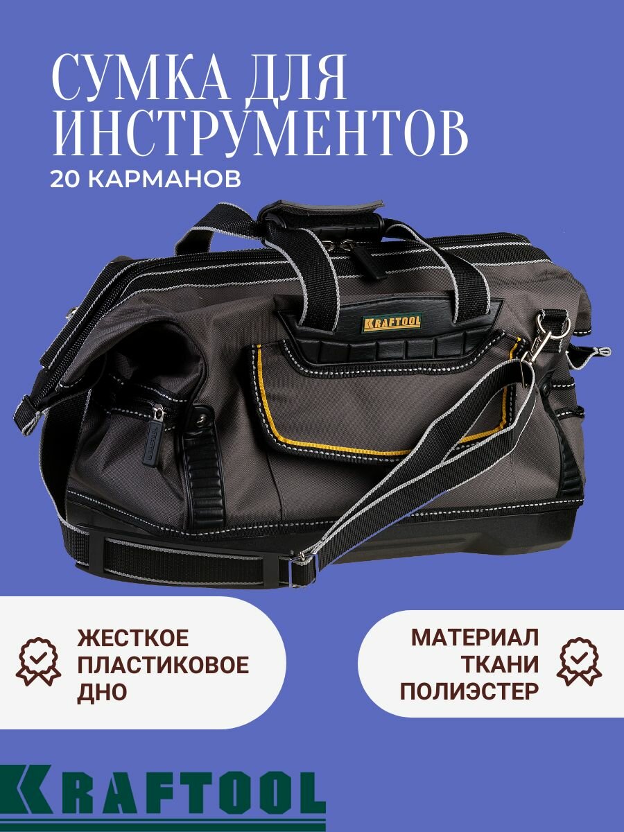 KRAFTOOL 45 см, жесткое пластиковое дно, сумка для инструментов с 20 карманами (38740-18)