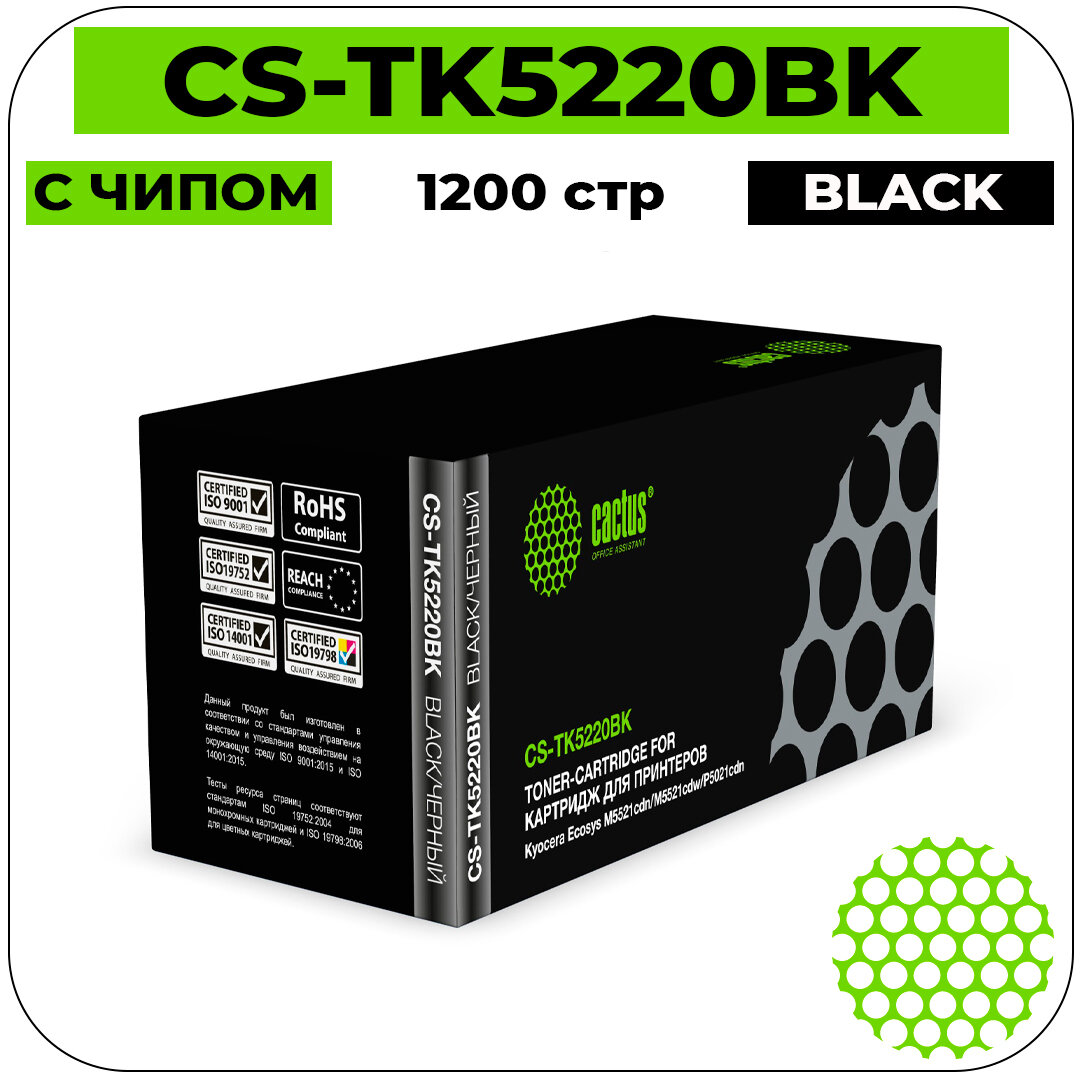 Картридж Cactus CS-TK5220BK TK-5220BK черный, для KYOCERA Ecosys M5521cdn/M5521cdw/P5021cdn/P5021cdw, ресурс до 1200 страниц