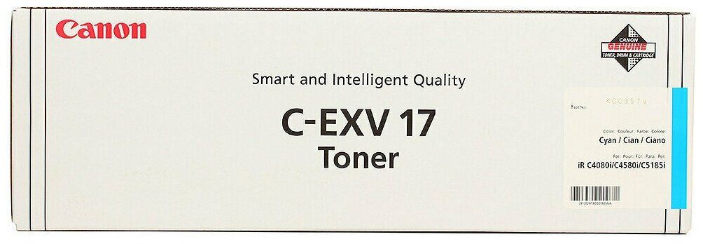 Ниже Вы можете прочитать отзывы на Картридж Canon C-EXV17C - 0261B002 тонер картридж Canon (0261B002) 30 000 стр, голубой, ознакомится с подробными характеристиками, посмотреть интересные обзоры и фотографии на Картридж Canon C-EXV17C - 0261B002 тонер картридж Canon (0261B002) 30 000 стр, голубой.