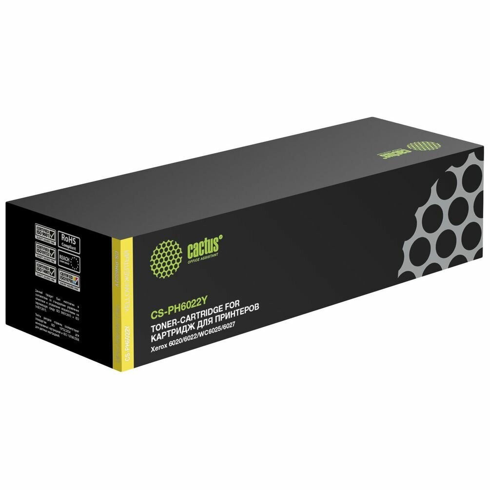 Картридж лазерный CACTUS (CS-PH6022Y) для XEROX Phaser 6020/6022/WC 6025/6027, желтый, ресурс 1000 стр.