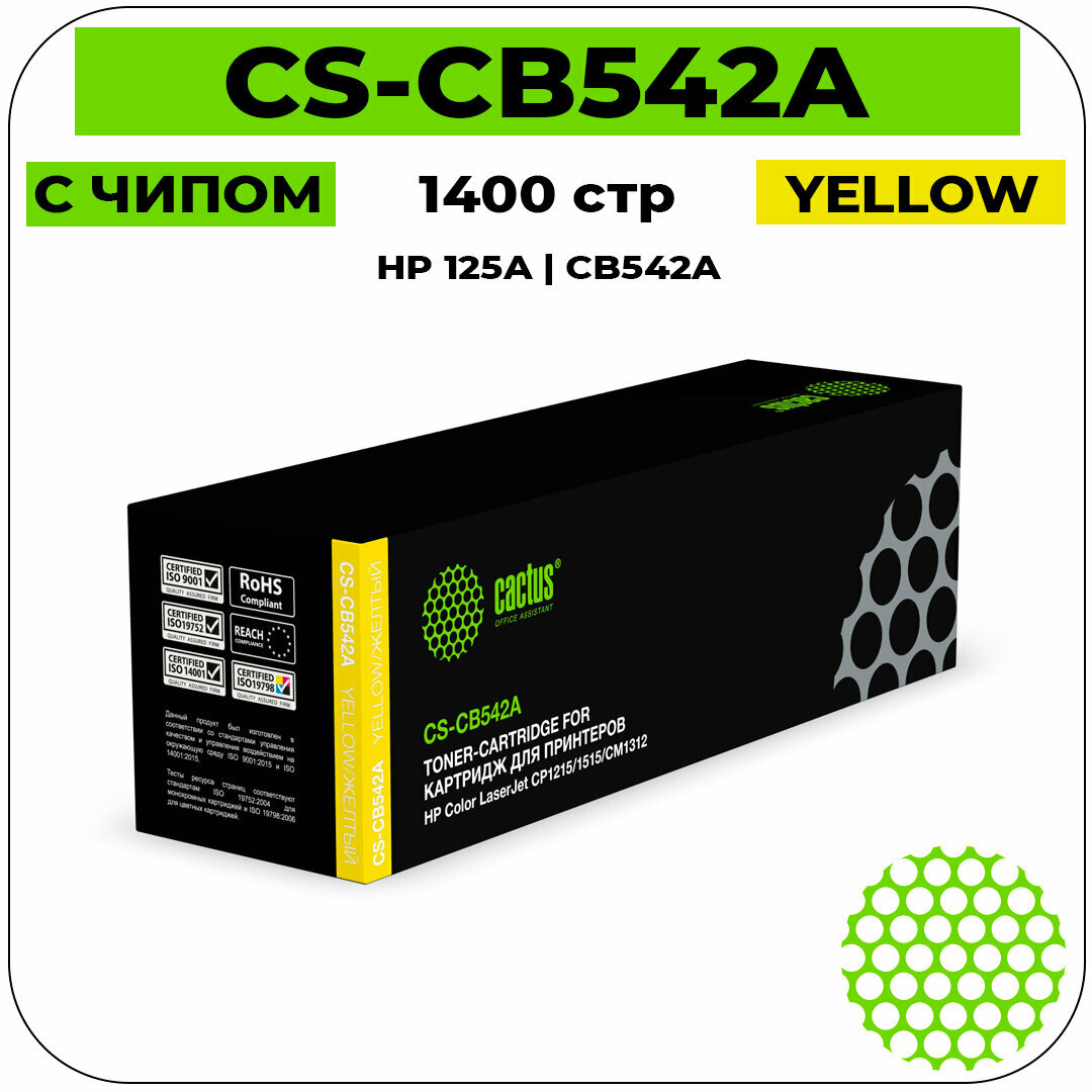 Картридж лазерный CACTUS (CS-CB542A) для HP CLJ CP1215/CP1515N/CM1312, желтый, ресурс 1400 стр.