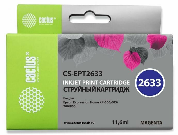 Купить Картридж струйный Cactus CS-EPT2633 пурпурный (12.4мл) для Epson Expression Home XP-600/605/700/800