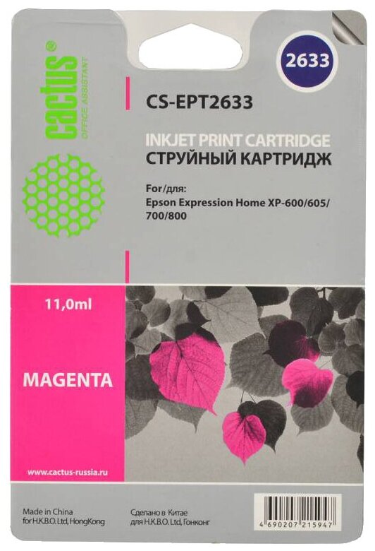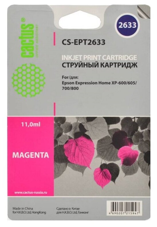 Картридж струйный Cactus CS-EPT2633 пурпурный для Epson Expression Home XP-600/605/700/800 (11ml) CS .