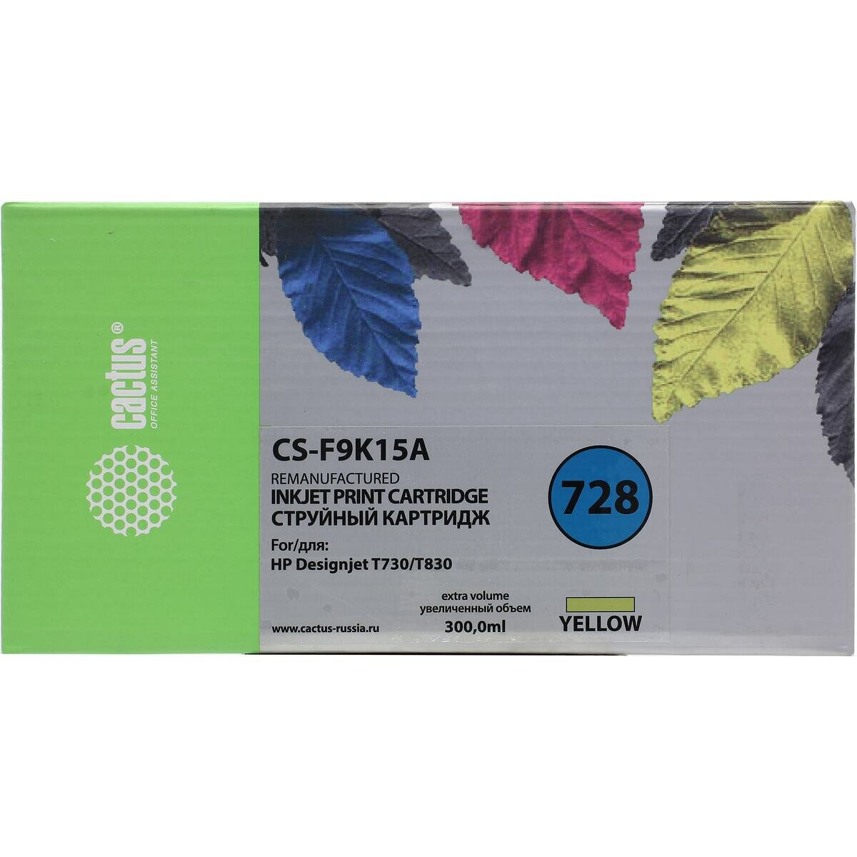 Картридж струйный Cactus Cs-f9k15a 728XXL желтый (300мл) для HP DesignJet T730, T830 Cs-f9k15a .