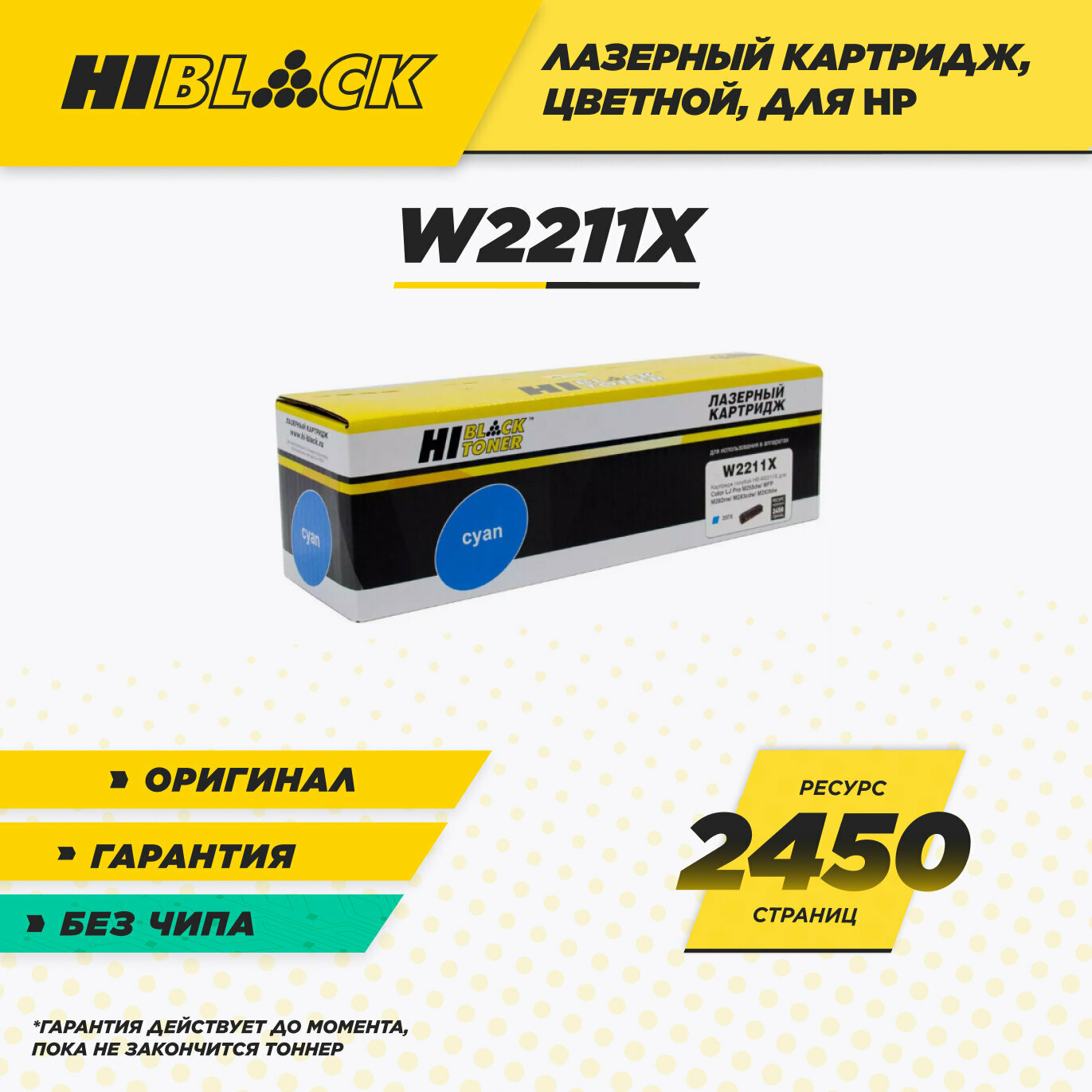 Картридж Hi-Black (HB-W2212X) для HP CLJ Pro M255dw/MFP M282nw/M283fdn, Y, 2,45K, без чипа