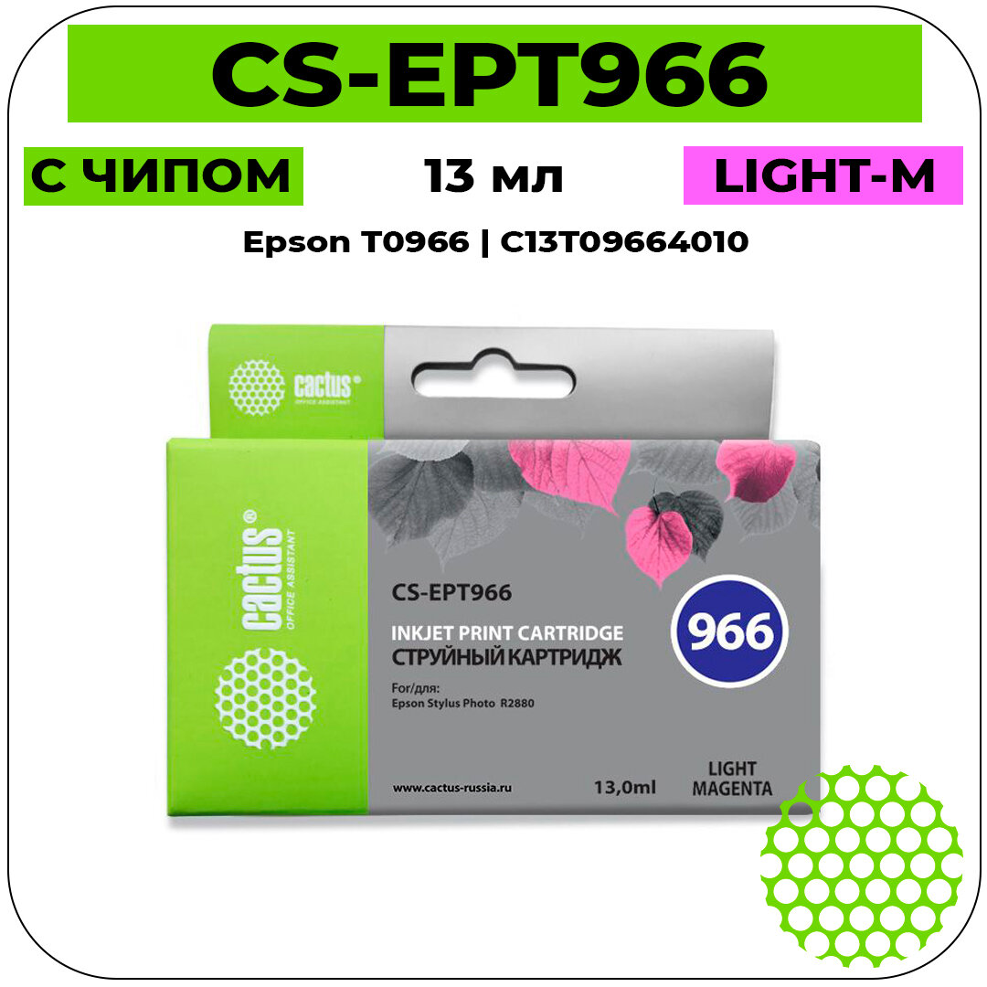 Картридж струйный Cactus CS-EPT966 светло-пурпурный (13мл) для Epson Stylus Photo R2880 CS-EPT966 .