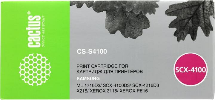 Тонер-картридж Cactus CS-S4100 для принтеров Samsung ML-1710D3; SCX-4100D3; SCX-4216D3; X215; Xerox 3115; Xerox PE16. 3000 стр.