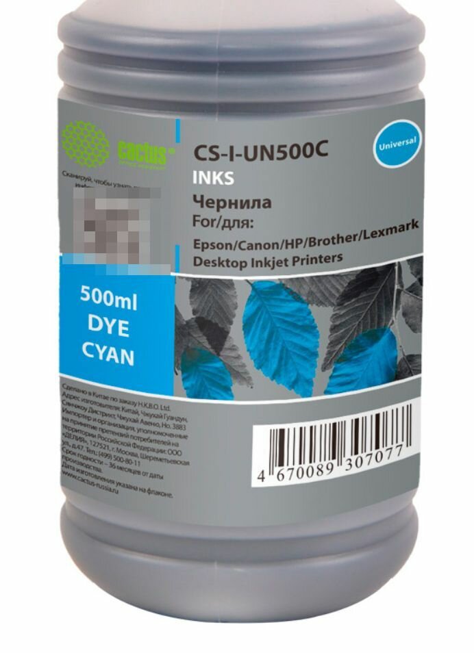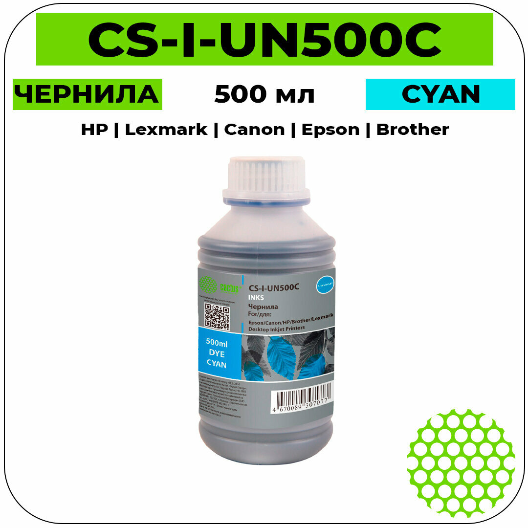 Универсальные чернила Cactus CS-I-Un500C голубой 500мл (HP, Lexmark, Canon, Epson, Brother)