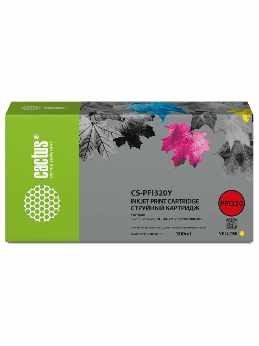 Купить Картридж струйный Cactus CS-PFI320Y желтый (300мл) для Canon imagePROGRAF TM-200/TM-200 MFP L24ei/TM-205/TM-300