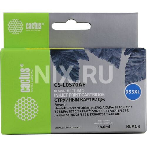 Cactus Расходные материалы L0S70AE Картридж 953XL для HP OJ Pro 7740 8210 8218 8710 8715, чёрный, 58 мл.