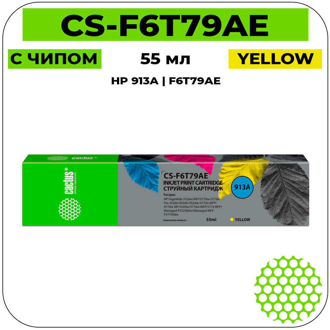 Купить Струйный картридж Cactus CS-F6T79AE 913A желтый (55мл) для HP PW 352dw/377dw/Pro 477dw/452dw