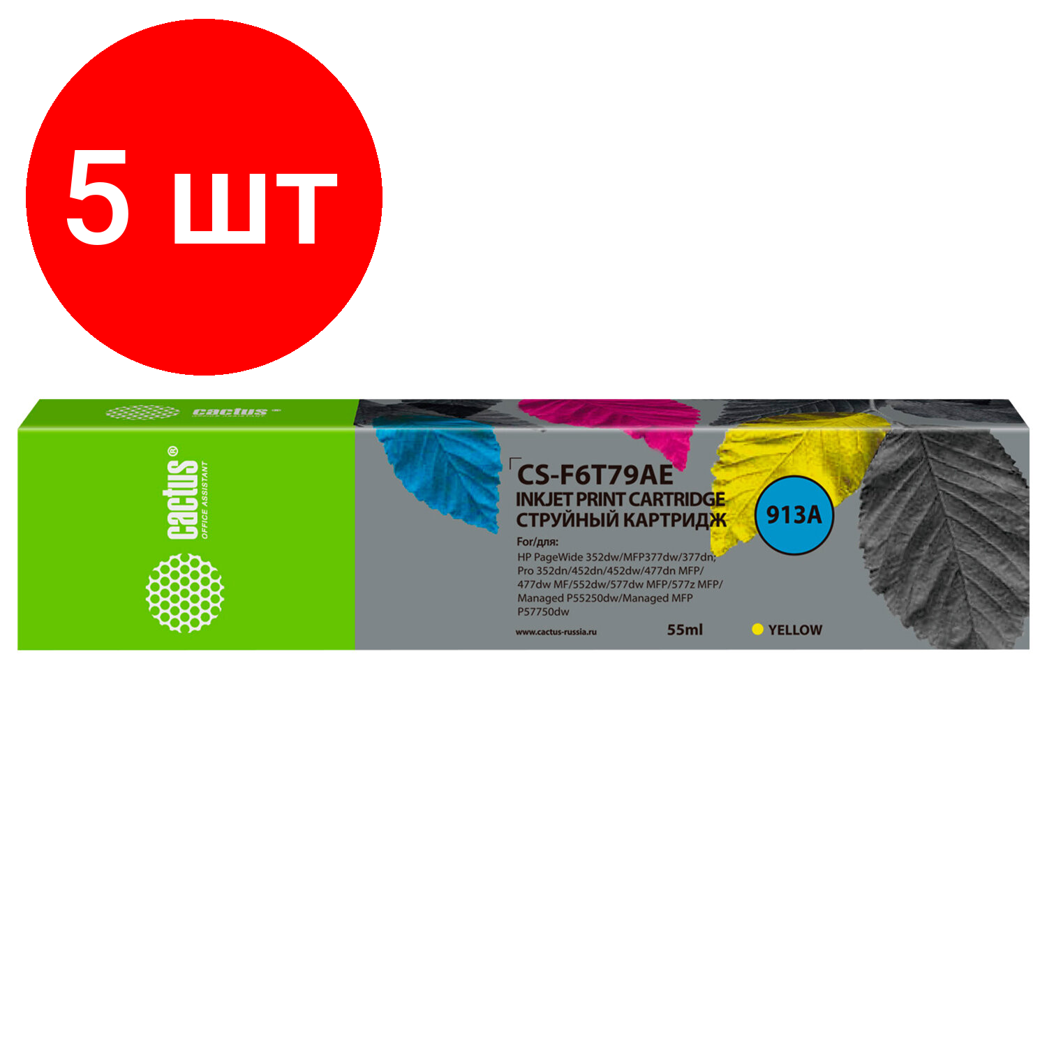 Ниже Вы можете прочитать отзывы на Струйный картридж Cactus CS-F6T79AE 913A желтый (55мл) для HP PW 352dw/377dw/Pro 477dw/452dw, ознакомится с подробными характеристиками, посмотреть интересные обзоры и фотографии на Струйный картридж Cactus CS-F6T79AE 913A желтый (55мл) для HP PW 352dw/377dw/Pro 477dw/452dw.