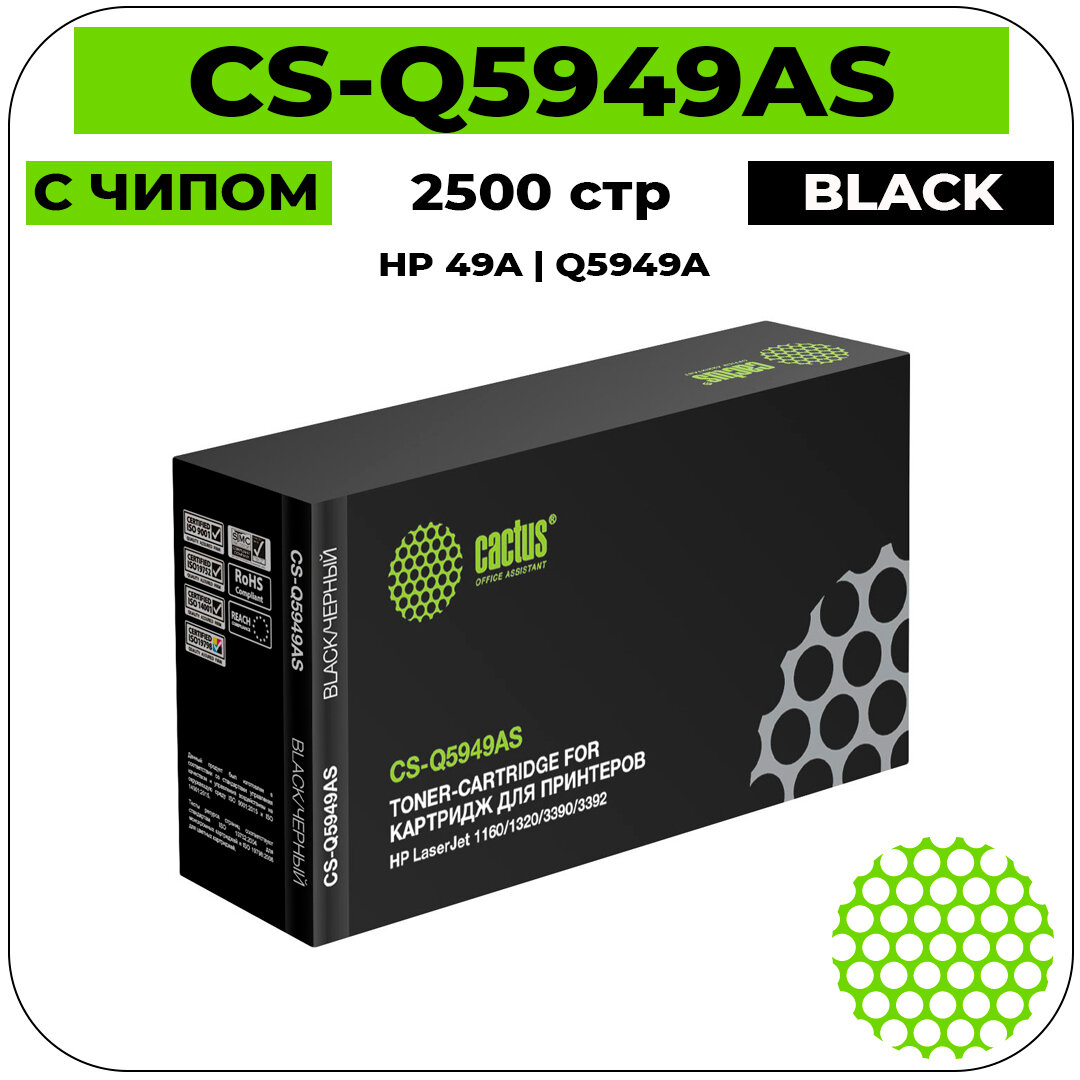 Картридж лазерный CACTUS (CS-Q5949A) для HP LaserJet 1160/1320/3390, ресурс 2500 стр, CS-Q5949AS