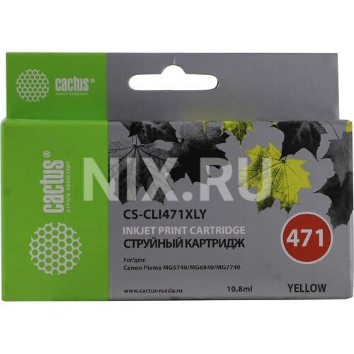 Картридж струйный Cactus CS-CLI471XLY CLI-471XL Y желтый (10.8мл) для Canon TS5040/MG5740/MG6840/MG7740