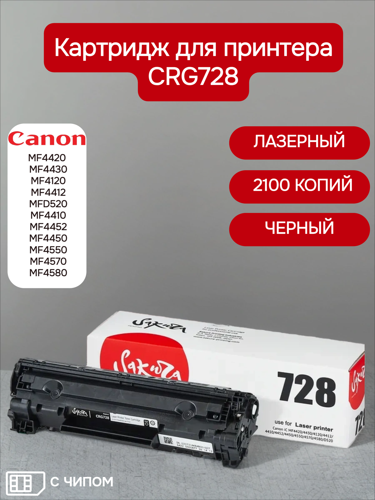 Картридж Sakura SACRG728 / CRG-728 для Canon MF4420/4430/4120/4412/4410/4452/4450/4550/4570/4580/D520
