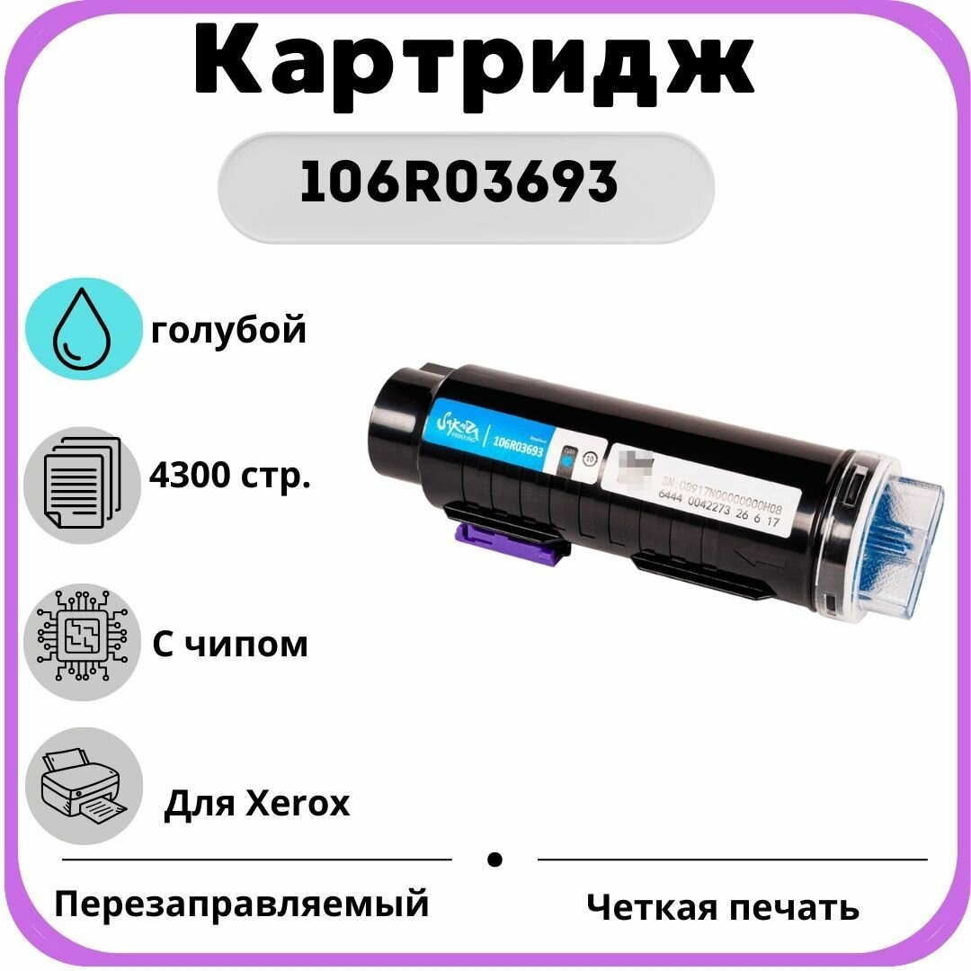 Купить Картридж Sakura SA106R03693 (Xerox 106R03693) 4300 стр, голубой