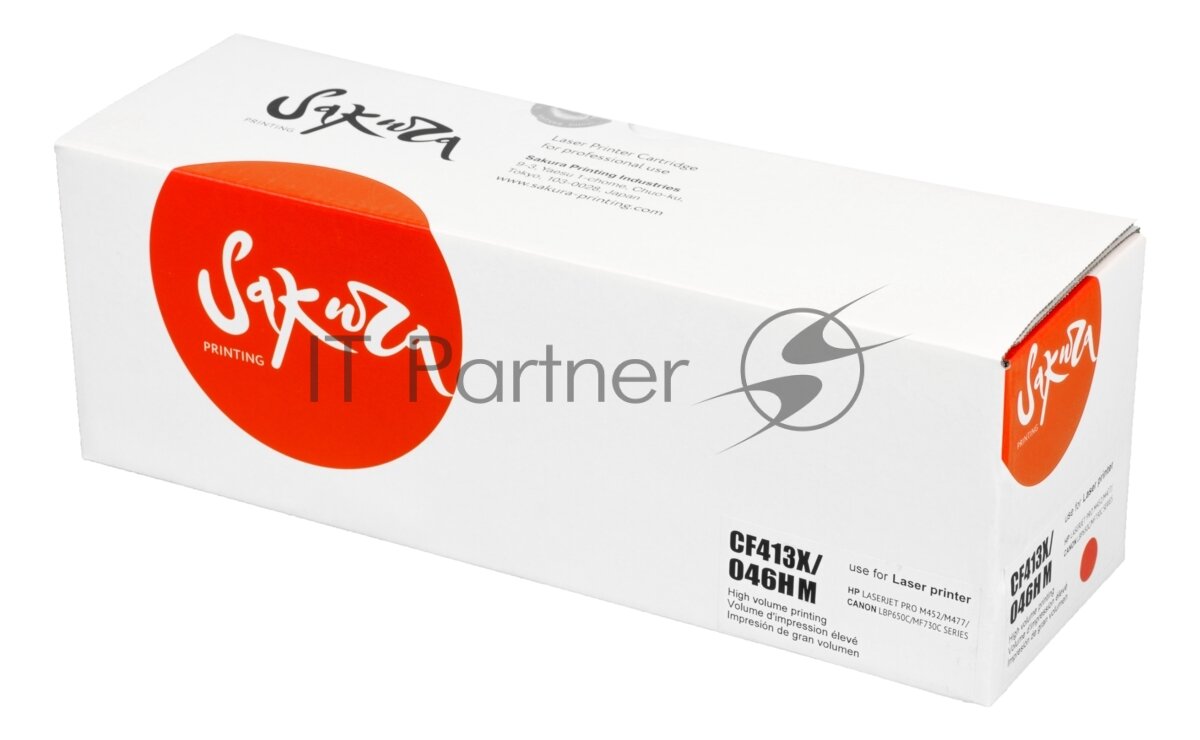 Картридж Sakura CF413X/046HM для HP, Canon, пурпурный, 5000 к. LJ M452nw/M452dn/M477fnw/M477fdw/M477fdn/M377dw/iSENSYSLBP653Cdw/LBP654Cx/MF732Cdw/MF734Cdw/MF735Cx