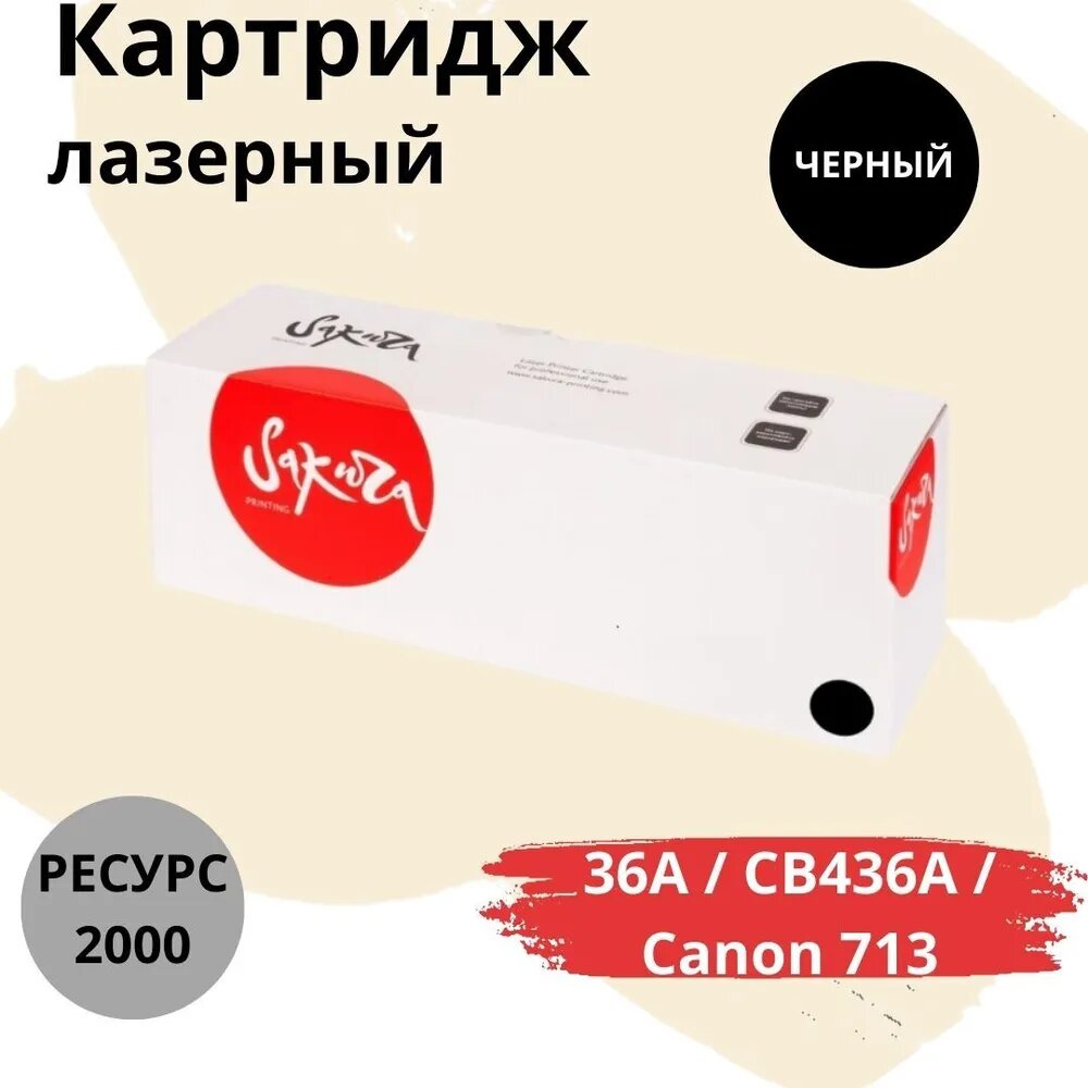 Картридж лазерный Sakura 36A / CB436A / Canon 713 / 713 черный 2000 стр. для HP, Canon (SACRG713/CB436A)
