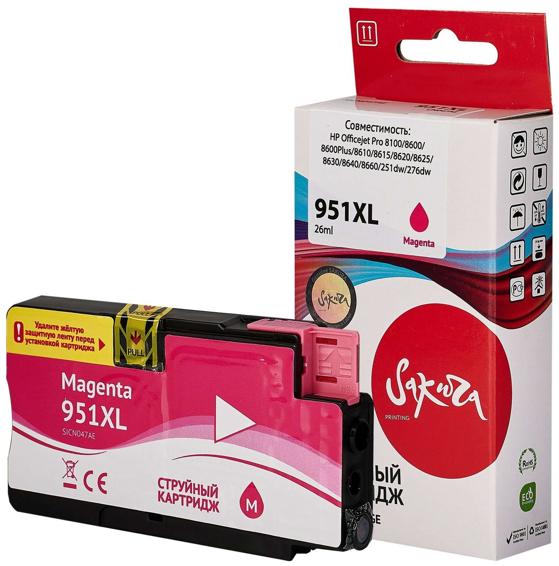 Купить Картридж CN047AE (№951XL Magenta) для HP, струйный, пурпурный, 26 мл., 1500 страниц, Sakura