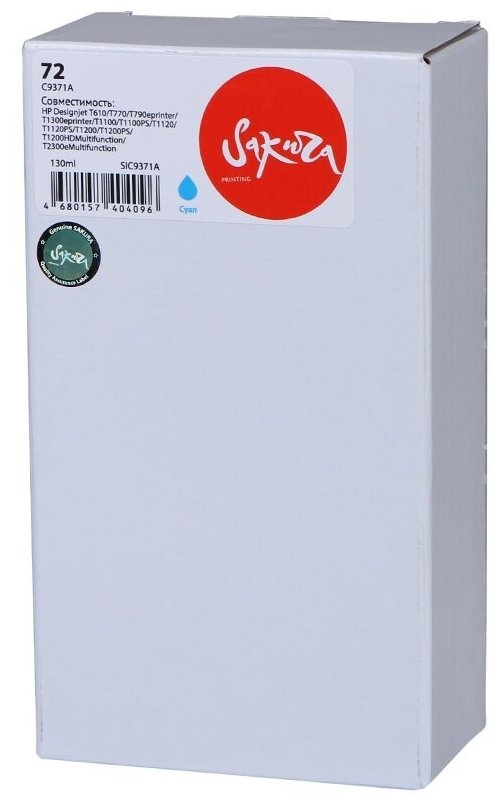 Картридж C9371A (№72 Cyan) для HP, струйный, голубой, 130 мл, Sakura