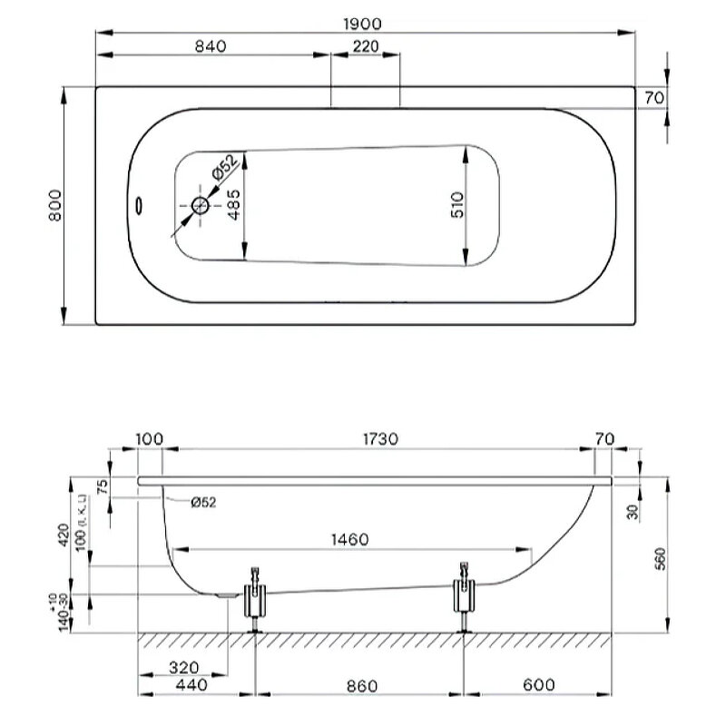 Ванна RAVAK Classic 120x70 акрил