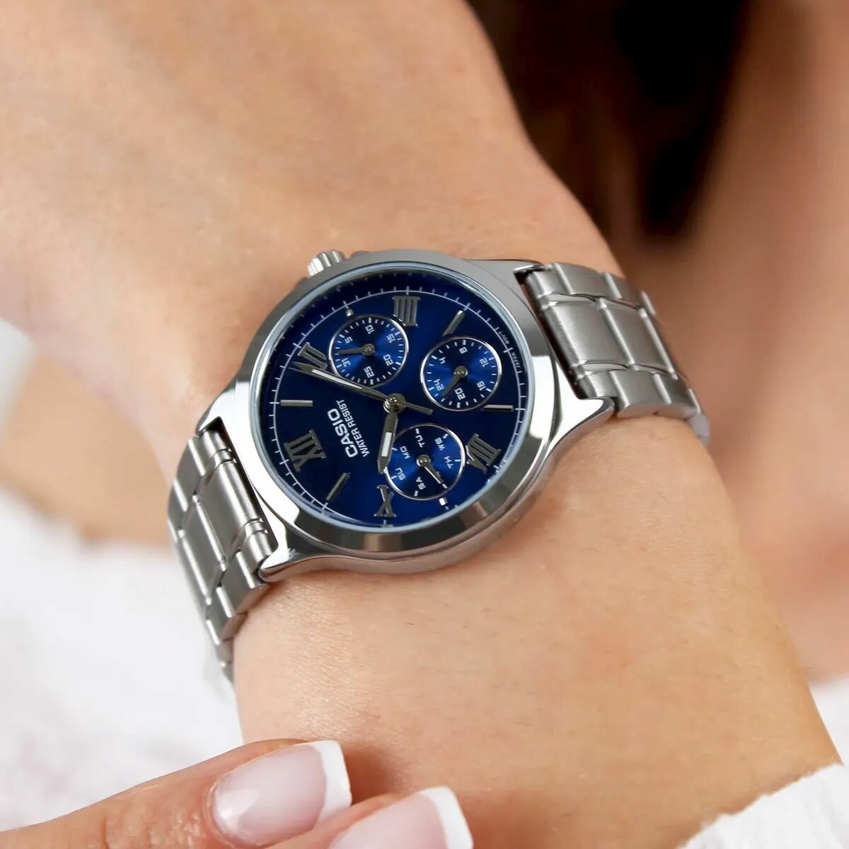 Женские наручные часы Casio LTP-V300D-1A на металлическом браслете с дополнительным циферблатами