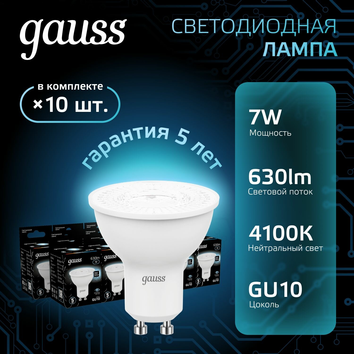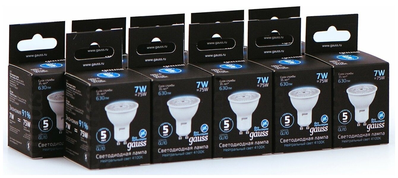 Упаковка ламп 10 штук Gauss LED MR16 GU10 7W 630lm 4100K 1/10/100
