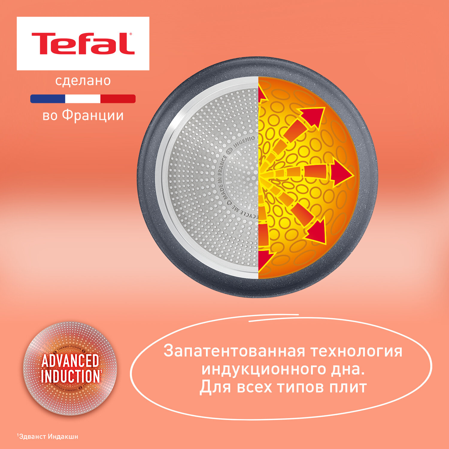 Набор посуды со съемной ручкой Tefal Ingenio Natural Force L3969053, 5 предметов, антипригарный, подходит для индукции, сделан во Франции, серый