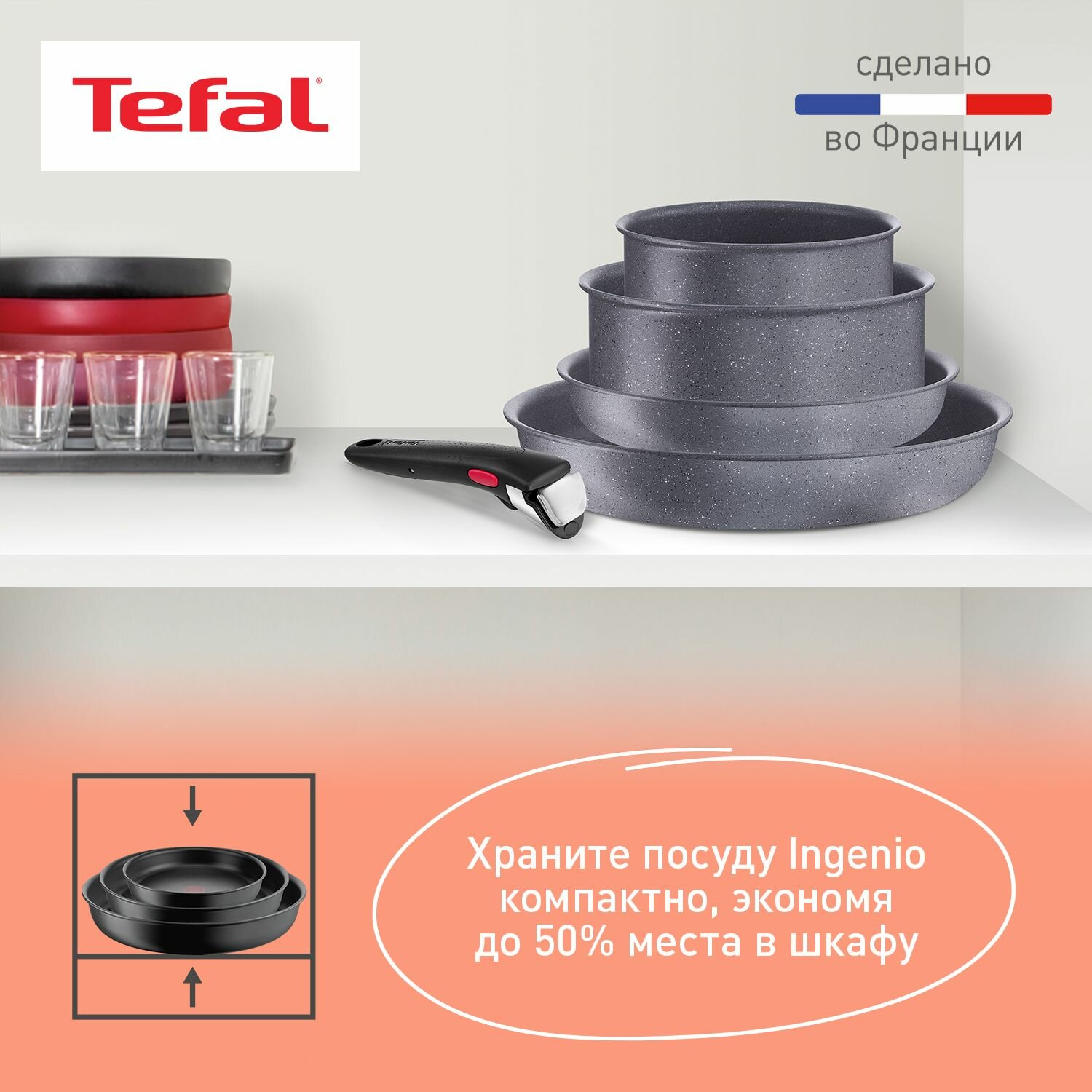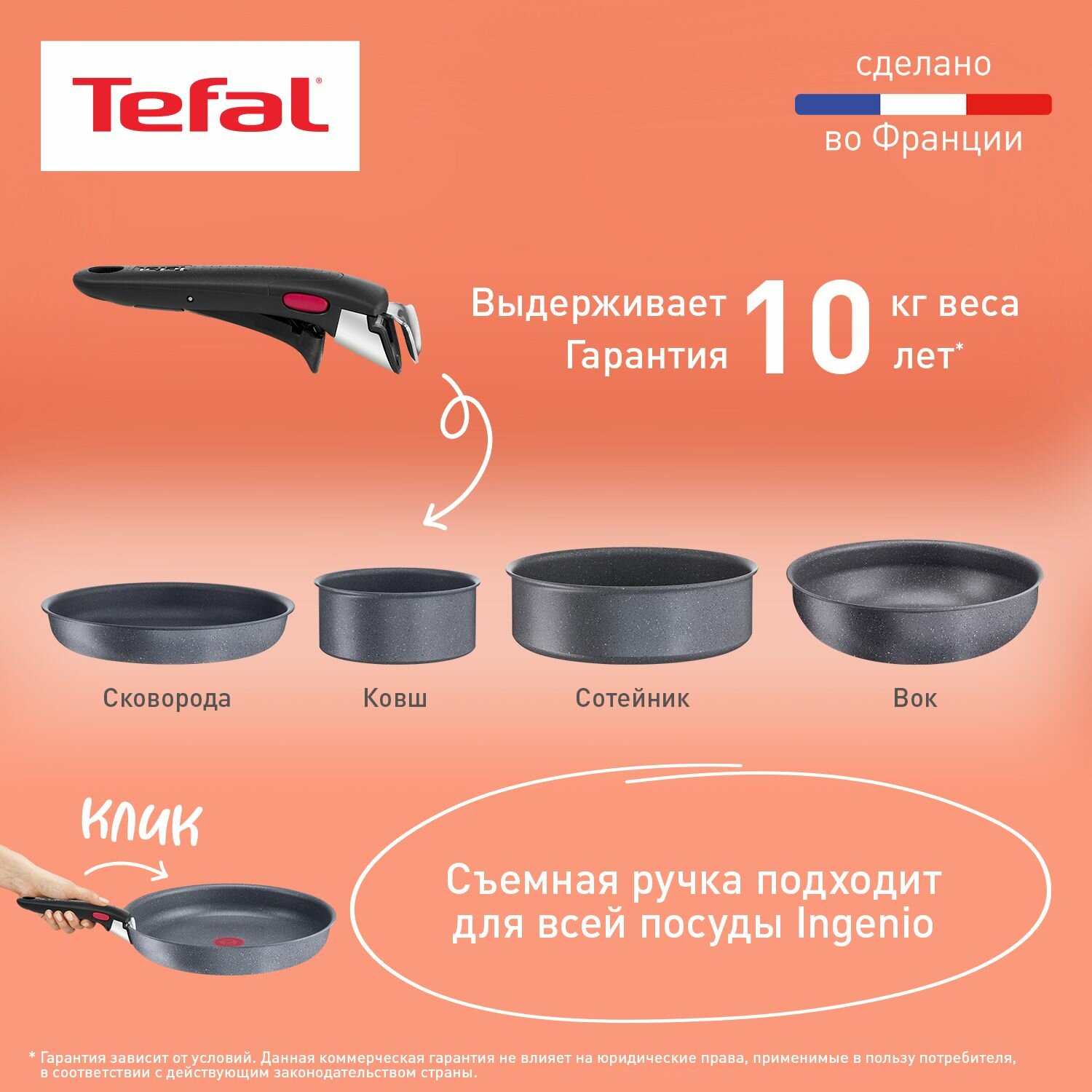 Набор посуды со съемной ручкой Tefal Ingenio Daily Chef Black L L7629102, 5 предметов, подходит для индукции, сделан во Франции