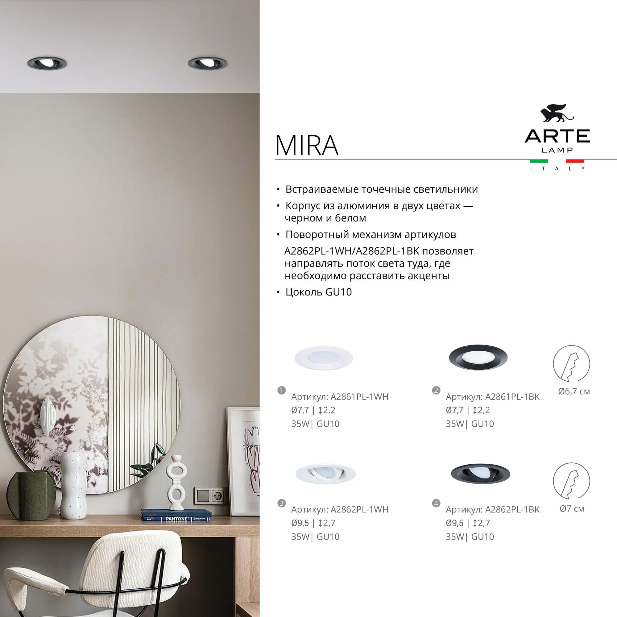 Ниже Вы можете прочитать отзывы на Точечный встраиваемый светильник Arte Lamp MIRA A2861PL-1WH, ознакомится с подробными характеристиками, посмотреть интересные обзоры и фотографии на Точечный встраиваемый светильник Arte Lamp MIRA A2861PL-1WH.
