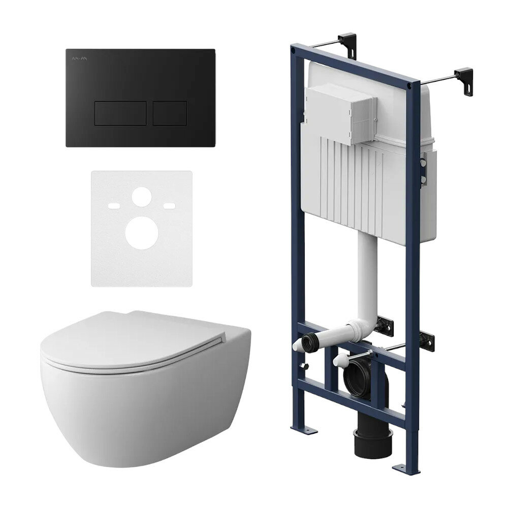 Купить Инсталляция с подвесным унитазом AM.PM AWE безободковый, кнопка черн мат, с сиденьем микролифт