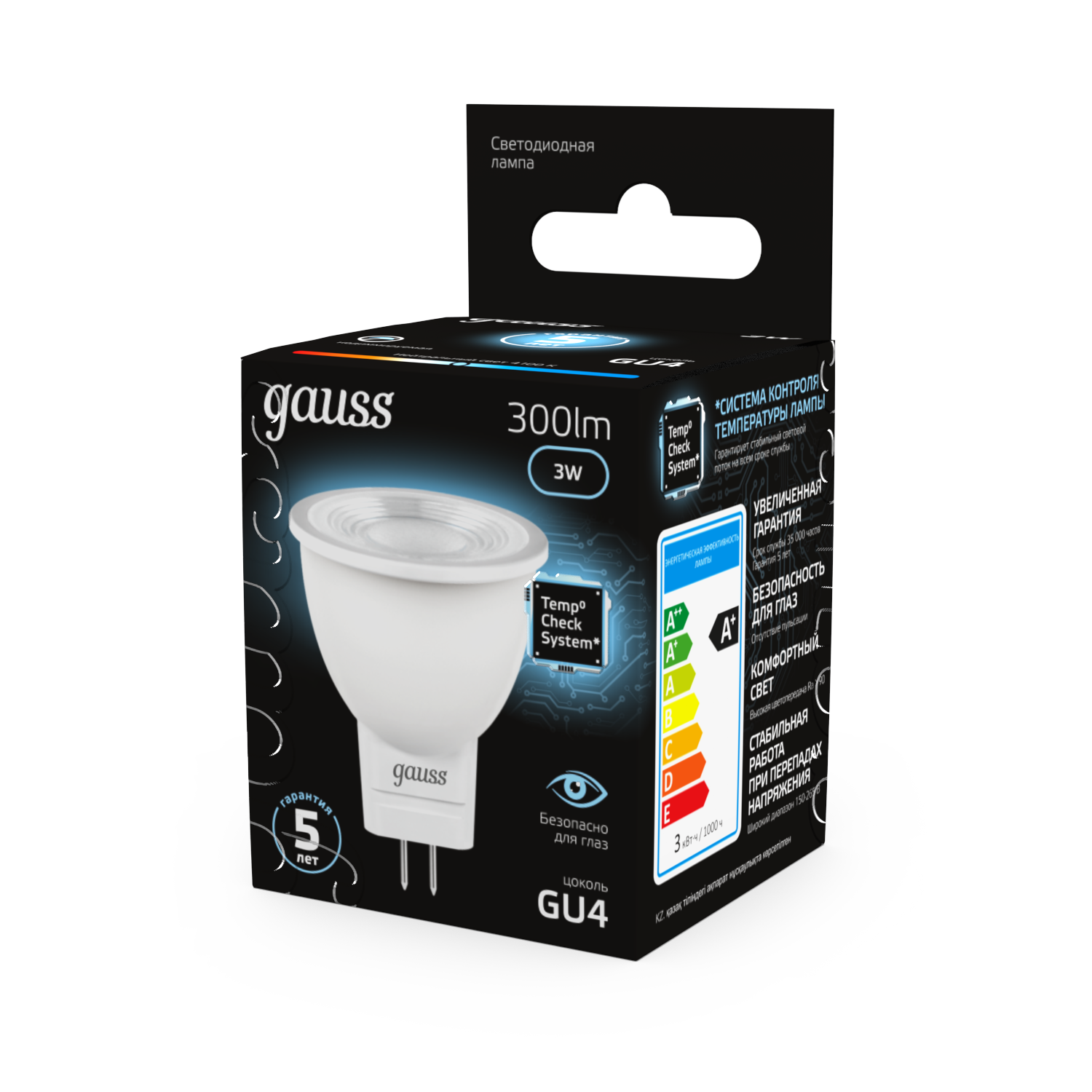 Лампа Gauss MR11 3W 300lm 4100K GU4 LED 1/10/100
