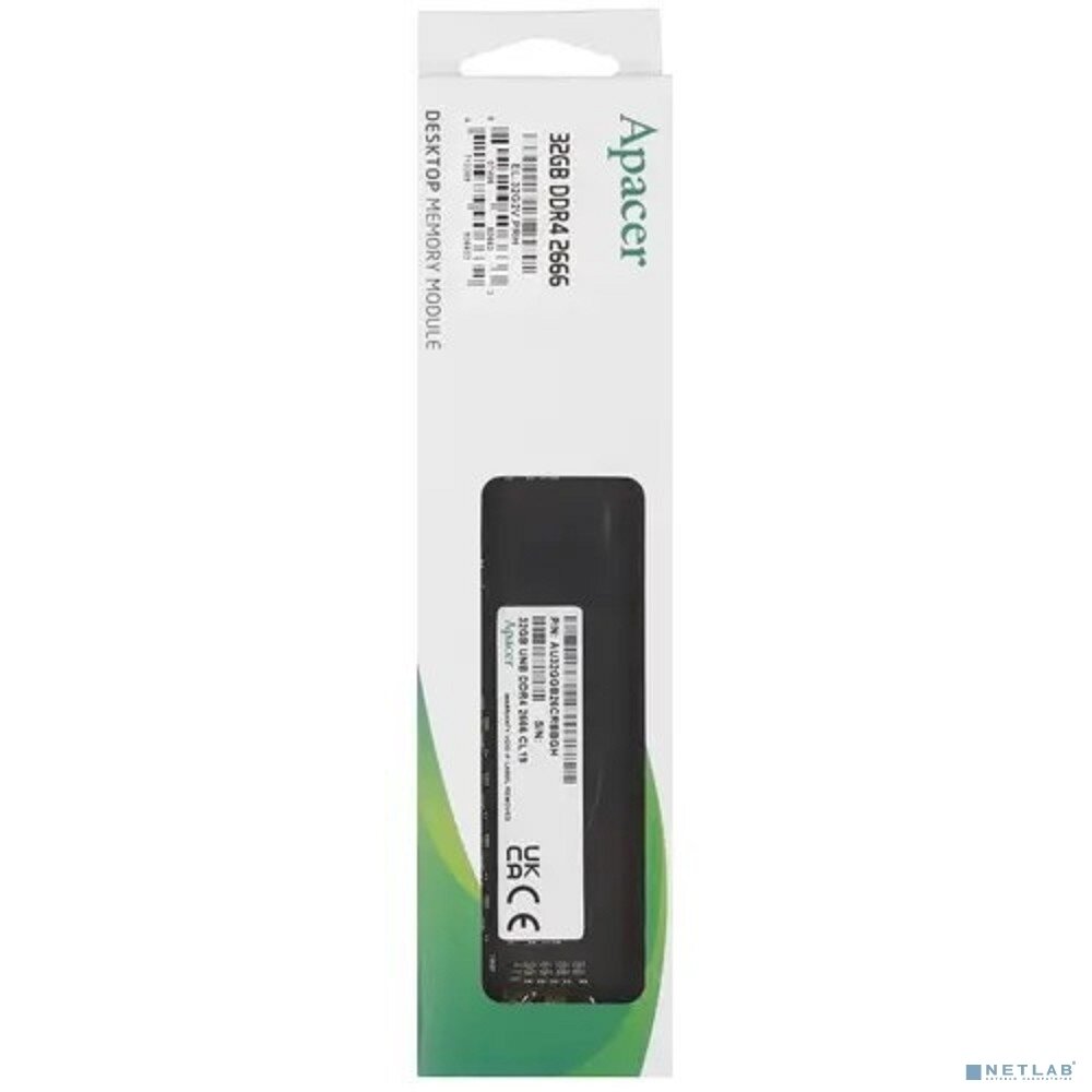Оперативная память Apacer DDR4 32GB 2666MHz UDIMM (PC4-21300) CL19 1.2V (Retail) 2048x8 3 years (AU32GGB26CRBBGH/EL.32G2V.PRH) .
